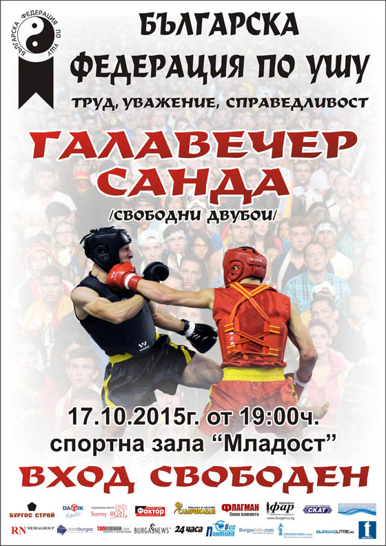 На 17 октомври 2015 година, събота, от 19 часа в Бургас ще се проведе галавечерта на Балканското първенство по ушу с участието на бойци от български и чуждестранни клубове.